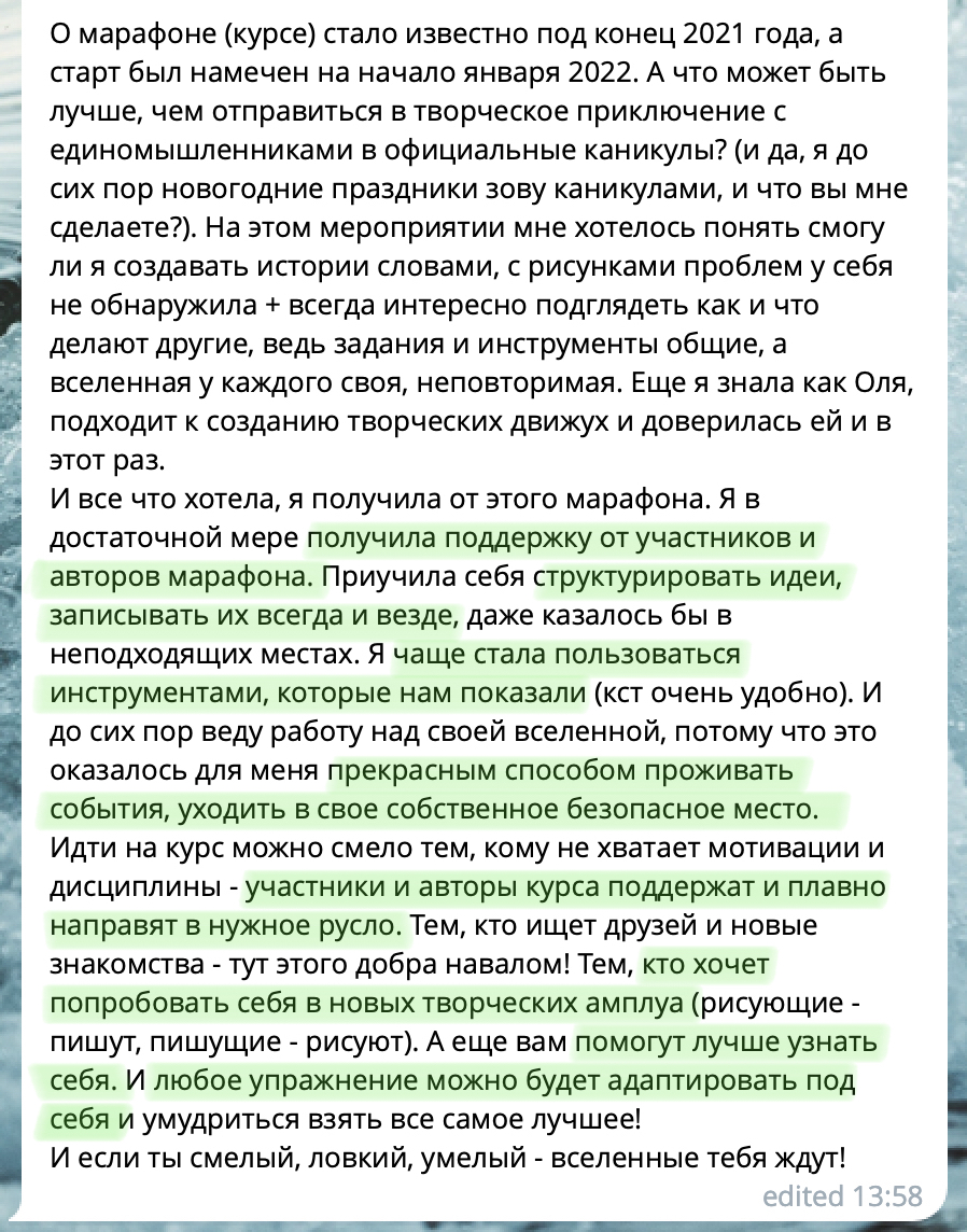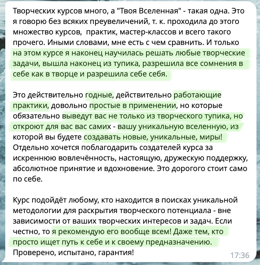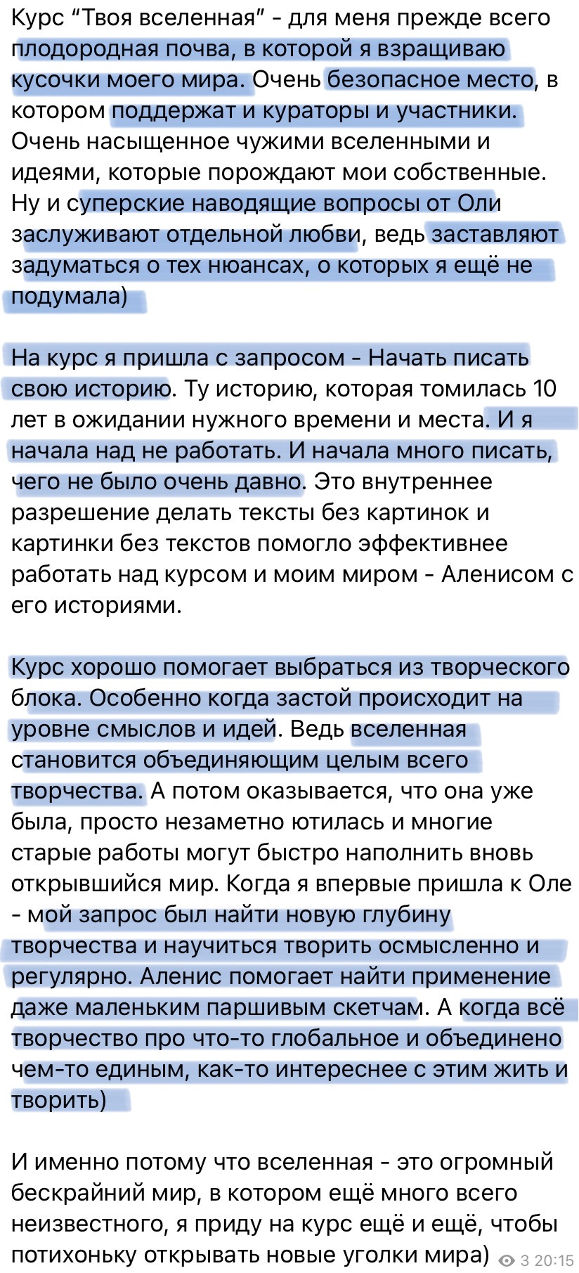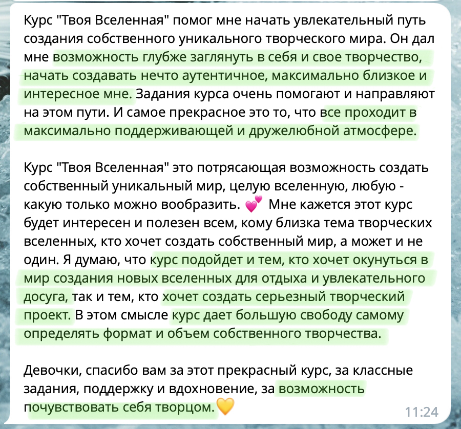 На курсе окружу вас заботой, задам наводящие вопросы, помогу сделать ваш мир действительно живым и самобытным. Щедро поделюсь своими методами генерации идей и создания разных элементов нового мира, а в конце помогу собрать все воедино в цельный проект.